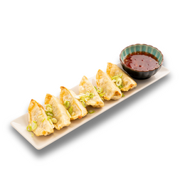 Crunchy shell with juicy chicken stuffing. Accompanied by sweet and sour sauces