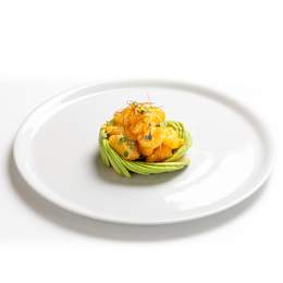 Crispy, golden-battered shrimp lightly dusted with a blend of secret spices. Plated with wakame seaweed and silky slices of avocado. Each bite offers a delightful crunch, bursting with fresh seafood flavor.