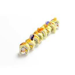 tempura shrimp with creamy, freshly made guacamole, mango and cream cheese . Wrapped in perfectly seasoned sushi rice, this innovative roll embraces a delightful mix of textures and tastes, showcasing a unique blend of Asian and Latin influences.