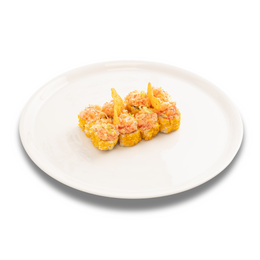 Tender shrimp, creamy avocado ,juicy mango, and crisp cucumber, all wrapped in seasoned sushi rice. Topped with rich Philadelphia cream cheese it offers a perfect flavor balance.