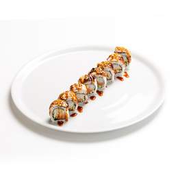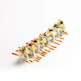 Tender eel, fresh salmon, drop of mayonnaise , crispy tempura shrimp and cucumber, all encased in perfectly seasoned sushi rice, this delicious roll offers a symphony of flavors and textures.