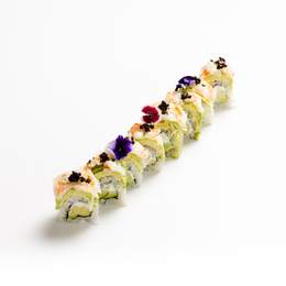 Premium-grade tuna paired with velvety avocado and crisp cucumber, enveloped in perfectly seasoned sushi rice. Topped with vibrant tobiko and a decadent drizzle of Kewpie mayo, this exquisite roll offers an opulent fusion of flavors and textures.