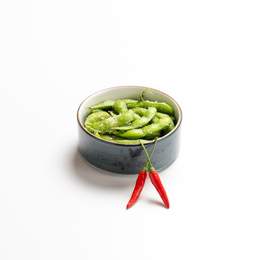 Tender edamame in zesty chili garlic sauce for a flavorful kick. This dish offers a delightful blend of spice and savoriness, making it a vibrant, healthy appetizer.