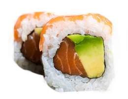 (8 Uds). Ingredientes: arroz, alga nori,salmón,aguacate, tartar de salmón y salsa teriyaki.