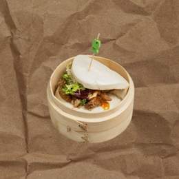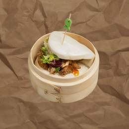 Pan bao al vapor rellanada de pato crujiente con verdura