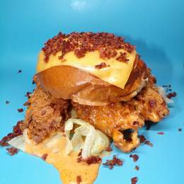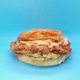 180gr de pollo a la plancha smash, sazonado a la perfección con queso cheddar, guacamole, mayonesa con chipotle y cebolla frita, todo en un pan brioche.