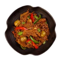 Carne de cerdo, lechuga, tomate y patatas fritas