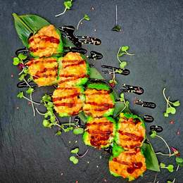 Philadelphia classic 8pzs, Rollo Tartar Salmon 8pzs, Rollo Horneado con Salmon Bakalao 8pzs, Rollo Horneado con Gambas Picante 8pzs