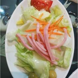 3 Rollos de primavera, ensalada (grande), arroz tres delicias (grande), pollo con almendras (grande), bolitas de cerdo con salsa agridulce y ternera con salsa de ostras (grande), con 3 bebidas