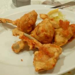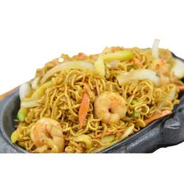 Pollo, ternera, gambas, jamón, zanahoria (todo junto) y salsa de soya