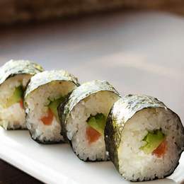 Surimi, aguacate, pepino, tobiko y salsa de la casa