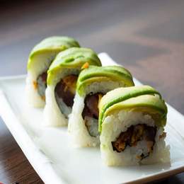 California salmón, maguro, dragón roll, Okinawa roll, California tobiko, Tokyo roll, tempura, maki de salmón, maki atún, sashimi de salmón, sashimi de atún, niguiri de salmón, niguiri de atún, niguiri pez mantequilla (4 rolls de cada uno)