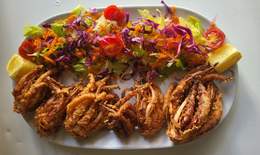 Tiernos tentáculos de pulpo fritos hasta alcanzar una textura crujiente, perfectos como aperitivo o plato principal para los amantes del marisco