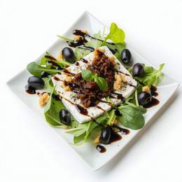 Ensalada De Rulo De Cabra Con Vinagreta De Ajo Negro