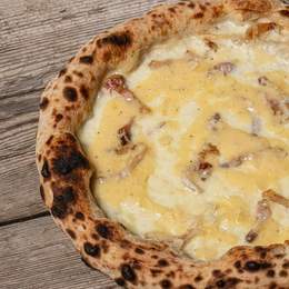 Mozzarella, guanciale, huevo, pecorino, parmesano y pimiena