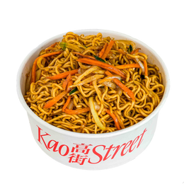Fideos de pasta rizada salteados al wok con verduras frescas (zanahoria, calabacín y col) y salsa Yakisoba