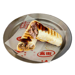 Laminas de Pato Pekín con cebolla tierna y salsa Hoisin envueltas en oblea de trigo.