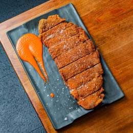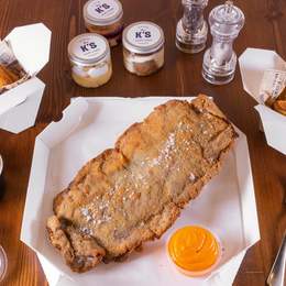 ¡Imposible quedarse con hambre! 500 g de ternera empanada rellena de queso de cabra y cecina de León.