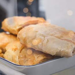 Pan griego crujiente en formal de aro cubierto con semillas de sésamo