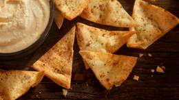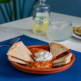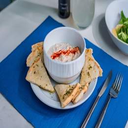 Yogur griego con pepino, ajo y eneldo, acompañado de pan pita