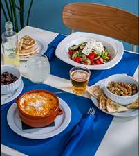 Tomate, pepino, cebolla, pimiento, queso de feta, aceite de oliva y aceitunas de kalamata