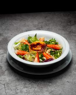 Otro de nuestros fresquísimos. Con mezclum de ensaladas, queso de cabra, fresas y vinagreta de módena y teriyaki.