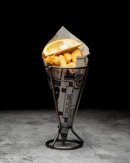 Patatas cortadas en cubos y fritas, servidas con nuestra salsa casera picante.