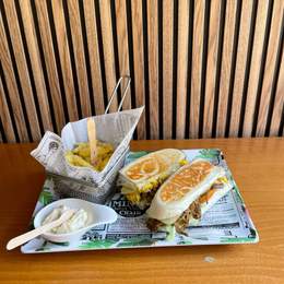 Perfecta para compartir: una variedad de carnes: chorizo, costilla, morcilla, panceta, bofe. Acompañada de arepa, plátano frito, tomate y limón