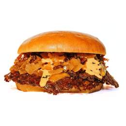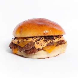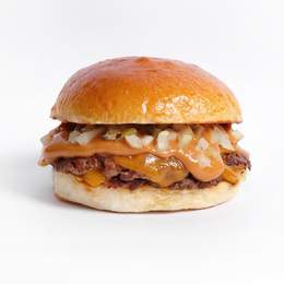 Doble smash burger 180gr. de carne de vaca vieja, cebolla smashada sobre la carne, cheddar y pan brioche.