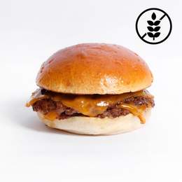 Burger sin gluten, pan, carne y queso cheddar. Nuestro equipo de id sigue buscando la receta celiaca ideal. Puede contener trazas de gluten, no apto p