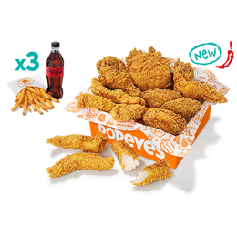 Seis tiras crujientes, tres piezas y tres alitas picantes. Como lo repartáis ya es cosa vuestra.