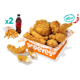 12 Tiras Crujientes + 2 salsas + 2 complementos + 2 bebidas