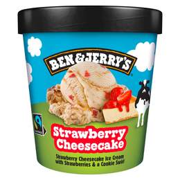 Helado crema sabor tarta de queso y fresas, con fresas y trocitos de galleta