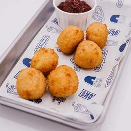 Bolas crujientes de queso crema y jalapeños. Acompañado por mermelada de fresa. Toque picante y dulce a tus entrantes