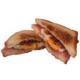 Perfecto si te gustan los sándwiches bien hechos: jamón, queso, huevo y bacon entre dos panes tostados a la plancha