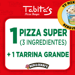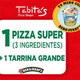 Pizza Súper + 1 Helado Ben&Jerry´s 465Ml . Incluye tarjeta para acceder a la web y participar