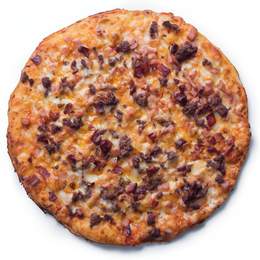 La clásica que nunca pasará de moda. Nuestra exquisita masa tradicional, base de salsa barbacoa, mix de quesos Tabita’s, ternera, bacon y un toque de orégano. ¡Siempre repiten!