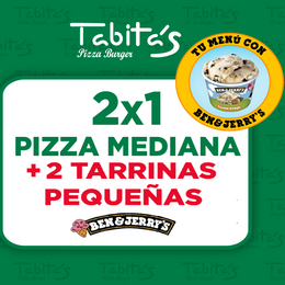 Dos Pizza Medianas Al Gusto + 2 Helados Ben&Jerry´s 100ML .Incluye tarjeta para acceder a la web y participar.