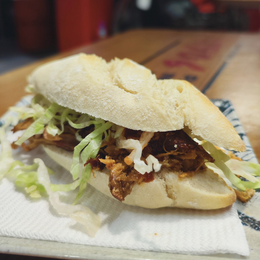 Pulled pork, aros de cebolla, lechuga y salsa BBQ Jack Daniel’s casera. Alérgenos: gluten y lactosa
