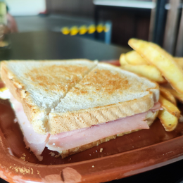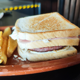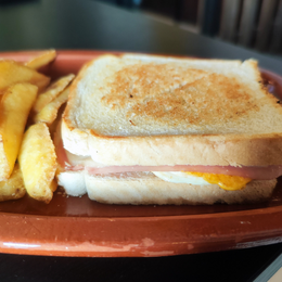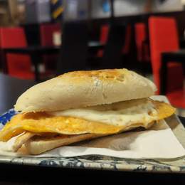 Doble york, doble queso y huevo a la plancha, un clásico. Los sándwiches no van acompañados de patatas. Alérgenos: gluten, lactosa, huevo y soja