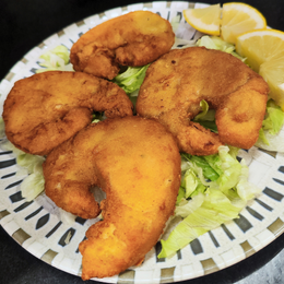 Cazón en adobo frito de la Bahía de Cádiz. Alérgenos: huevo, gluten y pescado