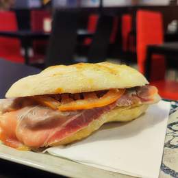 Filete de lomo, pimiento, jamón serrano y tomate natural. Alérgenos: gluten