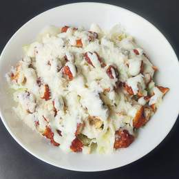Pollo a la plancha, queso y salsa especial casera R&W (tomate, pimiento, cebolla y pollo). Alérgenos: gluten y lactosa