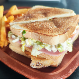 Nuestra nueva mezcla de pollo, lechuga y mayonesa; york, huevo a la plancha, queso fundido y tomate. Los sándwiches no van acompañados de patatas. Alérgenos: gluten, lactosa, huevo y soja
