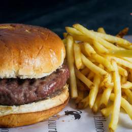 Con pan brioche, doble carne de ternera y cerdo, doble de queso, lechuga, huevo a la plancha, bacon y salsa de queso cheddar. Alérgenos: lactosa, huevo, sulfitos y gluten (carne ternera cerdo). Las hamburguesas no vienen con patatas de guarnición