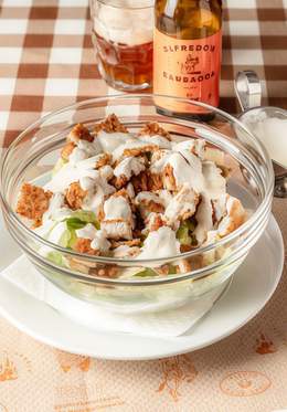 Queso, bacon y salsa Alfredo's Barbacoa.