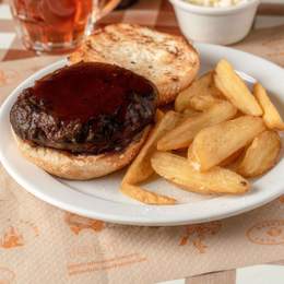 Nuestra hamburguesa más básica. Carne y salsa barbacoa
