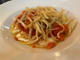 Pez platino frito y unos exquisitos pimientos asados hacen de este plato típico del sur una experiencia única.