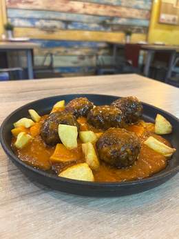 Nuestras ricas patatas bravas tienen un toque picante perfecto gracias a nuestra salsa tradicional.