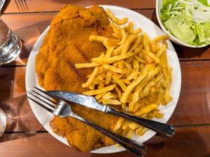 Cachopo relleno de bacon ahumado en haya , queso cheddar madurado , crujiente de panko y nuestra famosa salsa Emily Ro. Acompañado de patatas, pimientos del padron y extra de Emily Ro
